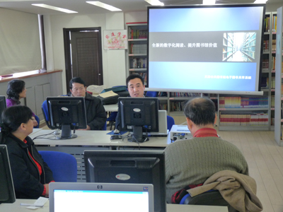 近日,天津图书馆来到和平区开封道社区,开展了一次内容丰富、形式多样的现场培训活动,这也是一种全新的服务模式有效尝试。通过生动的现场讲解和电脑演示,不但有力地宣传了文化共享工程的丰富资源,而且还把现代化的信息服务延伸到社区,实现了全国文化信息共享工程介绍、天津市电子图书共享系统的使用方法和电子期刊数据库检索方法“三位一体”的捆绑式服务。