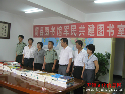 为庆祝中国人民解放军建军84周年,活跃军营文化生活,县文广局、县图书馆、县文物保管所,前往驻蓟部队测绘大队进行了慰问,为部队官兵送去军事、文学、 技术方面等各类图书近200册和价值2000元的慰问品,同广大官兵共度“八一”建军节。 此次选送的书籍内容健康向上,种类丰富多样,满足了广大官兵的阅读需求。蓟县图书馆负责人表示今后还将与部队共同建好“军民图书室”,根据官兵的需要及时对藏书进行补充和更新,以更好地满足官兵们的文化需求。 2011.08.03 (新闻来源:蓟县文化广播电视局)