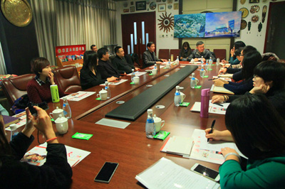 1月10日,北京市朝阳区社区青少年教育培训中心主任韩寅生一行到艺术中心参观。 华夏未来基金会副主席赵骞热情接待了客人们并陪同座谈。