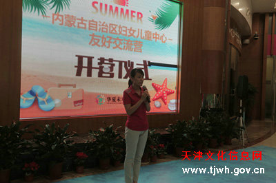 7月15日,内蒙古自治区妇女儿童中心友好交流营的开营仪式在华夏未来隆重举行。 开营仪式在雄壮的国歌声中开始, 华夏未来少儿艺术中心常务副主任安晓玉致欢迎辞, 并宣布“内蒙古自治区妇女儿童中心友好交流营”正式开营。少儿艺术中心副主任王宏瑾向营员代表授旗。