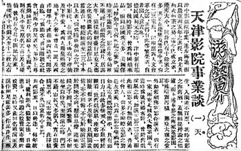 | 天津自清光绪三十二年(1906)出现第一座电影院后,随着时间的推移,国人及外国商人开办的电影院不断增多。天津解放后,一方面有计划地在市区发展电影院,一方面在工厂、农村大力发展为工人、农民服务的电影俱乐部和电影放映队,逐渐形成了遍布全市城乡的电影放映网。 |